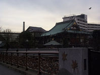 王子駅を降りたら石神井川(もみじ川?)沿いに上っていくと,紅葉橋があります.画像は橋の反対側から金剛寺を望んだところ.