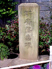 日暮里駅西口に出て坂を上り,最初の交差点を右折し諏訪台通(狭い道)を行くと,じきに養福寺が右手にあります.画像は山門から見た所で,「妍斎落歯塚」は画像左の石の柵の先,左折する付近にあります.