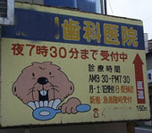 K矯正歯科(立川市 高松町)(2001.04.08) 立川駅北口,青梅線踏切そばの歯医者さん.同じデザインでアライグマというのはあったが,ビーバーは初めてだ. このビーバーはよそで見たことがある.タウンページでか?