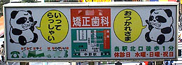 O歯科(中野駅,中野区)(1999.11.11) JR中央線中野駅上り線北側にあった看板.手にはしっかり歯ブラシをもっています.