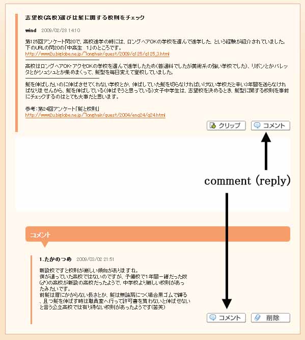 Click a comment button, and you will see following display.