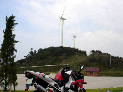 後に、道の駅「きらら多伎」にて一休み。ここは大きな風車がトレードマークで、海が見える丘の上でゆっくりと回る風車は