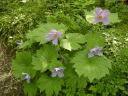 歩き始めて50分を過ぎると、シラネアオイがあちらこちらに。一服の清涼剤。90分もこの坂を登るのか。 |