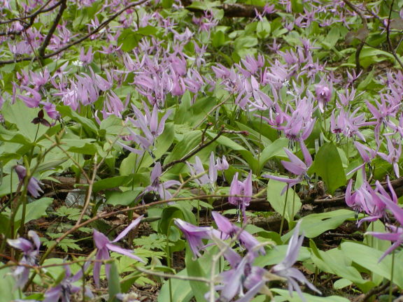 また歩き始めると両側にずーっとカタクリの群生。 |