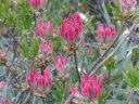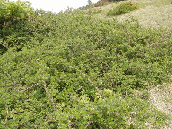 シャクナゲとコハマナスの群生。コハマナスはハマナスとイバラの混血だと言う事。 |