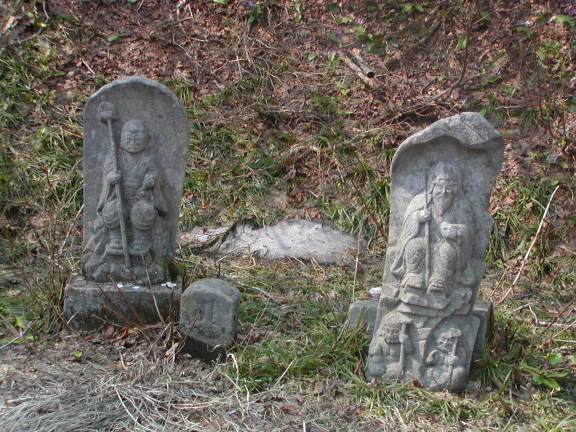 役(えん)の行者で休憩。左のルートは両津市加茂歌代に降りられる道。