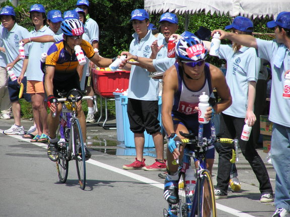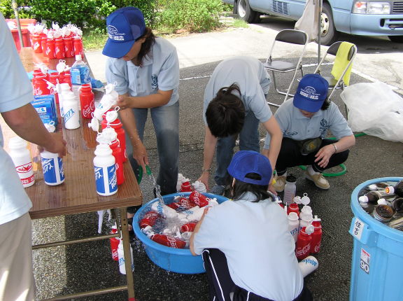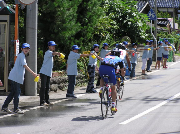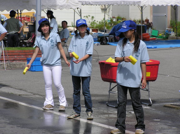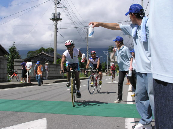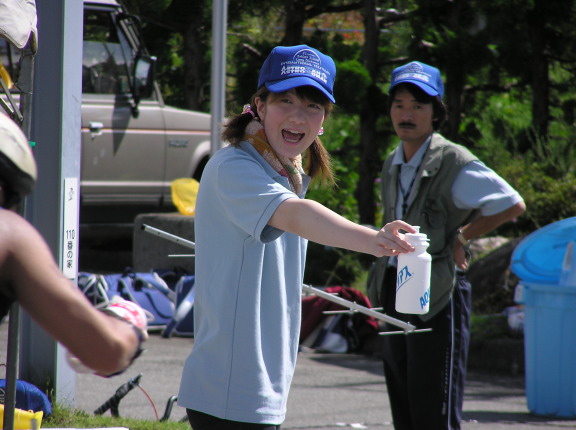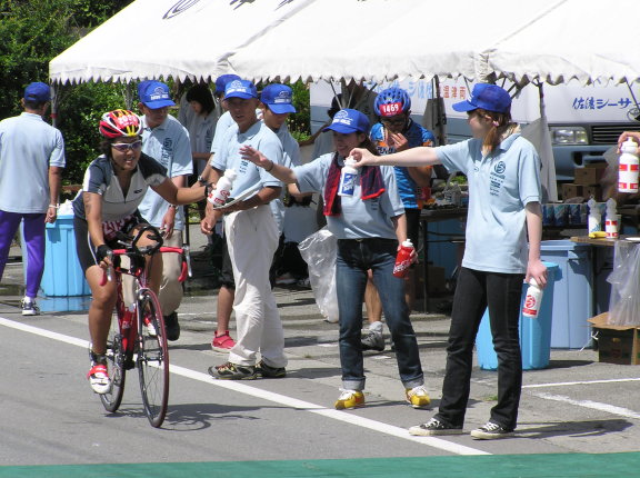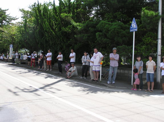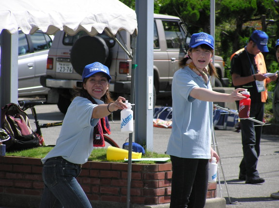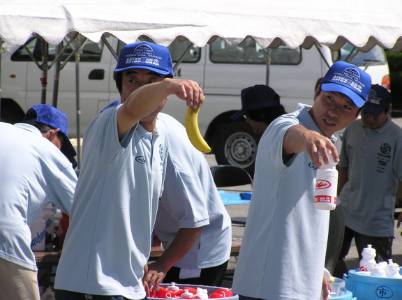 駐車場のエードステーションでも、ボランティアの人や応援の人が大きな声で応援していました。