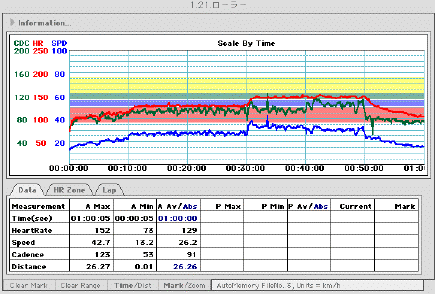 ローラーでのトレーニング強度の基準は2003年1月から採用の橋川健選手が某誌に書いていた心拍の区分をアレンジ。