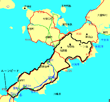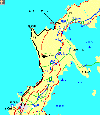 4日、那覇のホテルからやや二日酔いながら11時に出発、本日から滞在する仲泊のムーンビーチを目指す。国道58号は片側三車線の主要幹線道路で交通量も多くつまらないが浦添、宜野湾と来て嘉手納にさいかかるとどこまで走っても基地が横にある。ようやく基地が終わったところで国道ものんびりしてきたが適当に見当をつけて左折、読谷村を海に近づいたり離れたりしつつ残波岬に到着。眺めのいいところでゴロゴロしてからレストランに入りソーキソバを注文、ゆっくり食事休憩。再び走り出すと30分少々でムーンビーチに着いてしまいまだ2時半。もの足りないし同宿の連中は4時入りで彼らが到着しないと着替えが無い。3km先に入り口のある石川岳というのを地図で見つけ上ってみた。国道からの入りが急勾配でよろしい。車も通らない。ところが残念なことに2km上ったところからはじまる最後の急勾配のところから立ち入り禁止。頂上に自衛隊の施設があったのだ。仕方なく下ってもう一度上ってからホテルに帰った。65km。 |