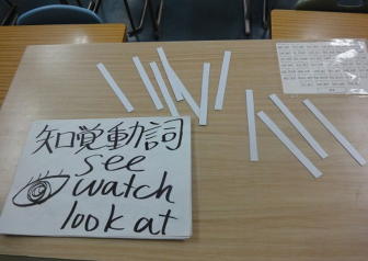 白いマグネット(これがポイント!)を指示通りの大きさ(細長い短冊)に切り、A4の紙にポイントや訳を書いて黒板に貼っていきます。