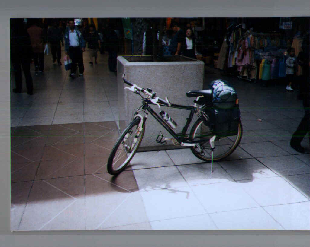 自転車を使う場合には、リアキャリア(ついてない場合は増設)に各種バッグを装着するのが無難な選択だが、トレーラーを引っ張る(!)という豪快なやりかたもある。右の写真はMTBにリアキャリアを増設し、そこにパニアバッグ(キャリアをはさむように積むバッグ)を装着、さらにその上に寝袋をネットで固定した例である。