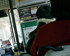 バスの中で撮った写真ですが、 皆さん気付きます? さらに接近 ↓ 前の人の肩の所に 『バか』