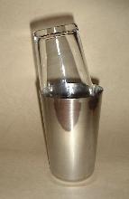 インド製のステンレス・カップに大きさの合う日本製の強化グラスを さがして使用しています。 濃度のある卵や、生クリームを使用するカクテルの場合は、 ストレーナーをかぶせて一気に注ぎ出せるので、このシェーカーを 使用致します。 また、シェークしてからオン・ザ・ロックにする場合にも 氷ごとグラスにいれることが出来るので、その場合にも使用します。