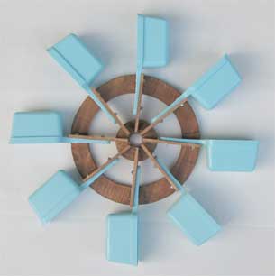☆ 水車を組み込む ・水車に軸を組み込み、エポキシ系の接着剤で接着する 水車と軸の直角度に注意 ・組み立てた水車を組み込む
