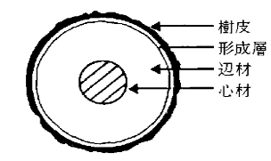 | | 原木の構造を部分的に分けると、樹皮部・木質部(辺材部・心材部)に大別される。樹皮は、厚いものから岩肌(鬼肌)・チリメン肌・サクラ肌に分けられ、同一樹種の場合樹皮の厚いものは乾きにくく、逆に薄いものは乾きやすい性質がある。又、キノコ(子実体)の発生においては、肌の薄いサクラ肌のものよリチリメン肌から岩肌に近いものの方が良質のキノコが出る。