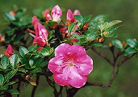 また、サツキは花を楽しむだけでなく、花木盆栽の代表として扱われ木全体の姿を楽しむ素材ともなっている。 |
