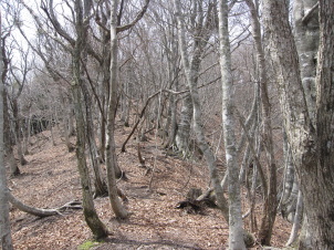 ブナが少しずつふえてきた。ときどき、幹周りが二抱えほどもありそうな大きなブナが立っていた。ブナの木を見上げると、梢のあちこちについたヤドリギが目立った。