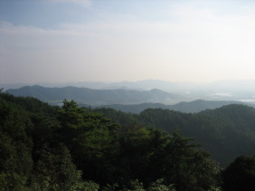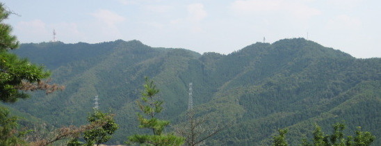 | 川辺城山より望む深山(左)から日光寺山(右)への稜線 |