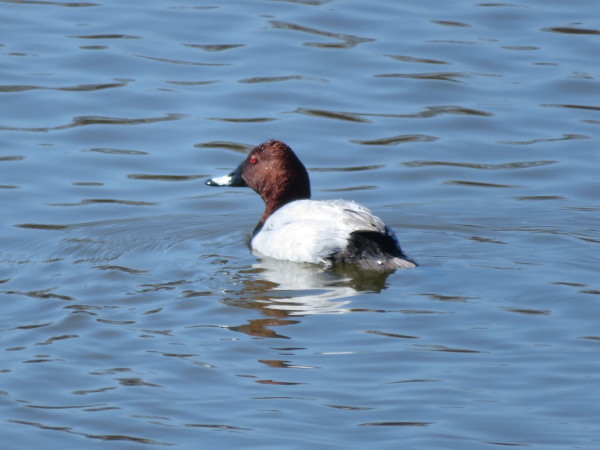 | ホシハジロは宮池にはよく飛来していましたが、小さなトンボ池で見かけたのは 初めてです。水に沈んだ木の枝に上手に止まっていました。 |