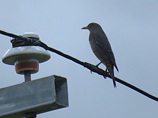 | 静かに飛んできて、電線に止まりました。逆光で胸の模様は見えませんで したが、撮った写真の明るさや鮮明度を上げると現れました。 |