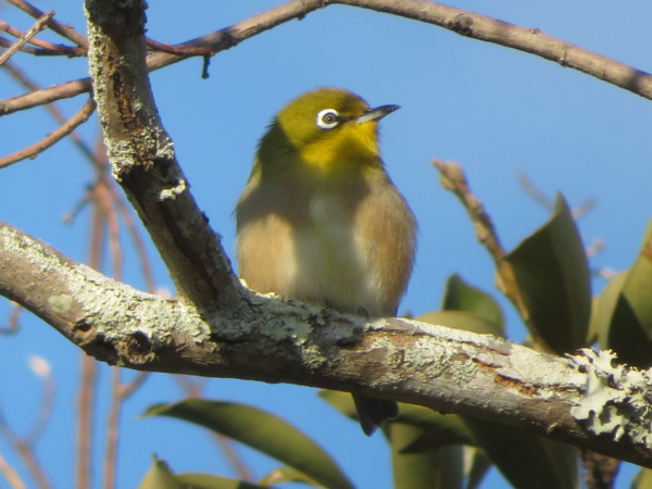 | 忙しく飛び回ることの多いメジロですが、このときは木の枝に止まってしばらく じっとしていました。 |