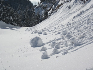 ここに、「ふじなし山登山道」の小さな板の看板が立っていた。その先に、10年前にはなかった林道が伸びていた。さあ、ここからはトレースのない新雪の上だ。 雪は、ガードレールの上まで積もっていた。ふわふわの雪は軽く、ふくらはぎまで雪に埋まった。スキーは、雪面に小さく光る雪の結晶を舞い上げた。息を整えるために立ち止まると、雪面を冷たい風が吹きぬけた。 標高825mぐらいで、林道は尾根を外れた。尾根から雪まくれが転がり落ちて、斜面にリズミカルな模様を描いていた。林道がどこに向かっているのか知らなかったので、Uターンして尾根まで戻り、夏道に入った。