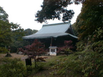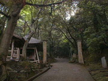 | 播磨中央公園の北を東に進むと、表参道石門に達する。(ここからは、「扇山コース入り口」との道標のある小径が、五峰山山頂に向かって伸びている。)石門を通り、五峰の山麓を巻くように車で進むと、山門下の広い駐車場に着いた。 ここから光明寺本堂までは、表参道。光明寺裏の本陣跡から、尾根に沿って自然林の中を小路が通じている。 五峰山、角尾山、引尾山と巡り、八王子池に下った。 |