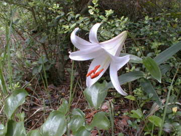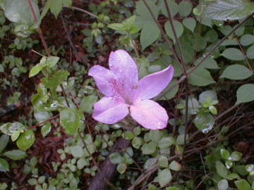 角尾山山頂からは、北東へ八坂町に降りる破線路が地形図に描かれている。しかし、急斜面のヤブの中に、この道は見つからなかった。 山行日:2000年6月11日