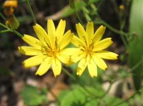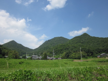 山頂を下ると羽束神社が建ち、その南に細長い広場が開けていた。日陰をえらんで、広場の岩に腰かけた。山のへりには、オカトラノオが白い花をつけ、ニガナやコオニタビラコが黄色の花を風に揺らせていた。