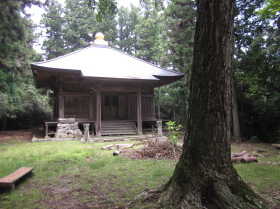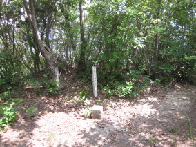 3、香下寺へ 丁石の立つ古くからの参拝道が、急坂をつづらに下っていた。道の両側には、スギやモミの大木が立っていた。一丁から始まった丁石が四丁を過ぎたところで傾斜がなくなり、五丁を過ぎると石仏が現れた。やがて、お地蔵さんの立つ六丁峠に達した。 ここから、少し南に足を伸ばして甚五郎山に寄った。甚五郎山の山頂には、腰掛けるのにちょうどよい岩がひとつ、コナラの木の下に飛び出していた。木漏れ日が林内に差し、風に枝葉のこすれる音が聞こえるだけの静かな山頂であった。 六丁峠に戻り、つづら折れの石段を下った。丁石は、いつの間にか十丁になっていた。十一丁を過ぎると、ようやく傾斜が緩くなり、十二丁でアジサイの咲く香下寺にたどり着いた。 山行日:2011年6月30日