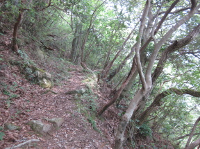 | 木器荘園の住宅地の最上部から、南に進んで宰相ヶ岳と羽束山をめざした(地形図実線路)。峠から宰相ヶ岳へも、羽束山へも明瞭な道がついていた。 羽束山からは、参拝道を香下寺へ下った。香下寺からは、デポしておいた自転車で元の登山口へ戻った。 |