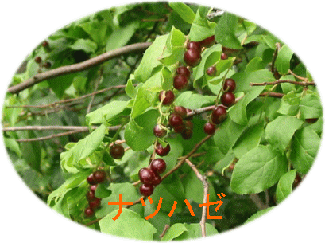 防鹿ネットの続く南尾根を山頂へ向かう。かつての伐り開きはほとんど消え、きついヤブこぎとなる。ナツハゼの実は、まだまだ固く、口にすると酸っぱくて後に苦さが残った。ふと、どこかでかいだような香りがしたので頭を上げてみると、サカキがやや黄色味を帯びた白い花を下向きに付けていた。急傾斜の尾根を上りきり、ネット越しにようやく頂上の三角点を見つける。 三角点の横に座ると、夏草に埋もれた。ササ、サルトリイバラ、イヌワラビやコナラ、モチツツジ、マメツゲの幼樹が目の前を取り囲んでいる。ウグイスが近くで鳴いた。今日こそ、姿を見てやろうと双眼鏡を取り出そうとしたとき、そのウグイスは目の前のソヨゴの木を下から跳ねのぼり、となりのヒノキの枝に一瞬移ったかと思うと、あっという間に飛び去った。 三角点を離れ、木々の切れ間に立つと、北が開けた。福山鉱山の採石地が赤茶けた地肌をさらしている。その上に、小世山が大きく稜線を伸ばし、その稜線の上に笠形山の山頂部が白く霞んでのっていた。 初鹿野の名は、『播磨国風土記』の中の「波自加(はじか)村」に由来している。 大汝命(おおなむちのみこと)と小比古尼命(すくなひこねのみこと)のがまん比べは、播磨国風土記の中でもよく知られている話である。 「屎(くそ)をしないで行こう」と言った大汝命と、「埴(はに、粘土)の荷を持って行こう」と言った小比古尼命は、数日後お互いにもうがまんができなくなった。大汝命は、その場にしゃがんで屎をしたが、そのとき小竹が屎を弾(はじ)き上げて衣に当たった。だから、その村を波自加村と名づけた。また、小比古尼命が埴を投げ捨てた岡を、埴岡と名づけたという話である。 「波自加(はじか)」が、「初鹿(はしか)野」になったのは、応神天皇が狩猟に当地へ来たとき初めて鹿が見つかったことによると、『ふるさと「やかた」の歴史』(後藤丹次 1975)に記されている(源出典不明)。 初鹿野は、初鹿野山西麓の10戸内外の集落である。集落の裏にそびえるこの山も、地元では「初鹿野」と山をつけないで呼ばれている。 古の人々のユーモアある想像力を思いながらも、またヤブと格闘して山を下っていった。 山行日:2003年6月31日 |