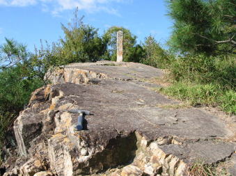 山頂のすぐ南に、平らな表面がゆるやかに傾斜した大きな露岩がある。山の名の由来となったともいわれる畳八畳ほどの広さのこの岩石は、今からおよそ2億年もの前に海底に放散虫というプランクトンの遺骸が静かに降り積もって固まったチャートであった。