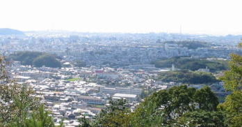姫路市街地の住宅街やビルの合間に、点々と散らばって浮かぶ緑の小丘。古の昔、ここに立った人々が、平野に点在する丘のつくりだすこの景観を見て、十四丘の伝説をつくったのであろうか。すでにあった地名から、神々の営みや争いを想像したのかもしれない。