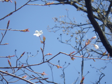 赤山を越して進んだ。青い空に、ヤマザクラの花がちらほらと咲いていた。