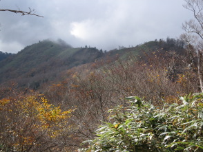 天気はめまぐるしく変った。布滝頭から赤倉山へと続く稜線を、雲が西から東へと越えていく。日がかげると、紅葉も山肌に暗く沈み、氷ノ山も色が消えて山影だけになった。