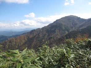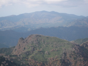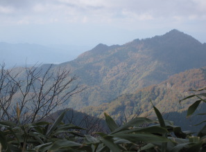 双眼鏡を取り出して、周囲の山々を眺めた。山頂から北に、ここまで歩いてきたコースをたどってみた。赤倉山の非対称の特異な山形の上に、扇ノ山が大きくかぶさっていた。西のずっと遠くに、大山の山影が白く薄く見えた。