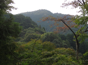 つづら折れの道が続いた。スギに雑木が混じる林内に、木漏れ日が降り注いだ。傾斜が緩んだところに、笠木の落ちかけた古い石の鳥居が立っていた。 鳥居をくぐり、道に張り出したアセビの曲がりくねった幹や枝をよけながら進むと、道は再び傾斜を増した。ウラジロノキの葉が、茶やオレンジに色づいている。道の落ち葉は、乾いた音をたてた。
