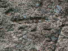 風化面に現れた溶結構造(画面中心の凹部がレンズ 長さ14cm)