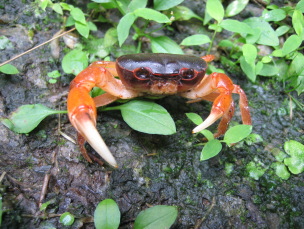 サワガニが構えている |