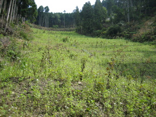 | 砂防堤から林道への急斜面 |