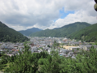 公園の一番上にある展望台に登ると、口銀谷の町並みを見渡すことができた。銀山の町として、華やかな文化を発展させてきた生野。今もその香りを色濃く残している。