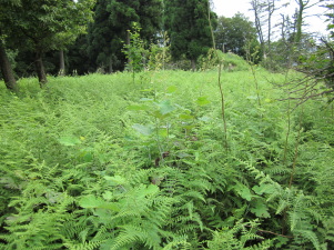 曲輪の中の道は、うっそうと茂ったシダに没していた。少し戻って、木の枝を折り取り、その枝で足先をたたきながら進んだ。近くでウグイスが、のどかに鳴いていた。