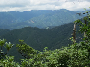 びわの丸を過ぎると、道は尾根の東側をつづらに上っていた。ウリハダカエデが、大きな葉を広げていた。雑木林の中は湿っていて、「今はヒルがいっぱいおって……」という生野書院の館長さんの言葉を思い出した。