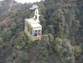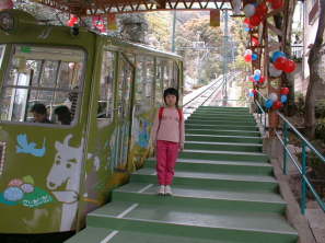 下山は、ロープウェイとケーブルカー。摩耶山頂と山麓を結ぶこのラインは、阪神・淡路大震災で被害を受け長らく運休していた。それが、この3月17日に駅舎も新しく生まれ変わって運行が再開された。ロープウェイは、緩やかに放物線を描きながら六甲の豊かな森林の上をすべるように降りていった。開かれた窓からの風に帽子が飛ばされた(車内に落ちました)。乗り継いだケーブルカーは、時々曲がりながら、緑のトンネルの中を駆け下りていった。神戸の街がどんどん大きくなってくる。待ち望んでいた運転の再開と心地の良い緑の風……車内のどの顔も喜びに満ちていた。