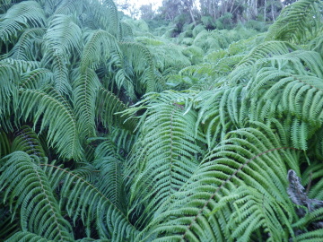 ウラジロジャングルの急坂を登り切ると、山頂手前の270mピーク。ここからは、背の低いコシダに変わって歩きやすくなった。