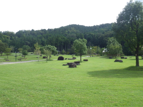| 三釈迦山は丹波並木道中央公園の中にある。道は整備されていて歩きやすい。下山後は、公園内の遊歩道を、置かれた岩を見ながら歩いた。 |