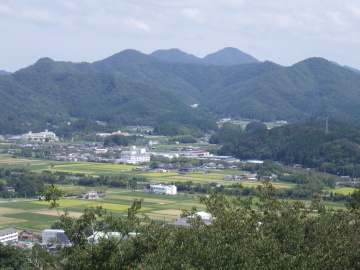 盆地の中の田んぼは緑と黄緑にきれいに色分けされ、その中に住宅街が点在している。ところどころに、小山が深い緑で盛り上がり、その小山を縫うよう篠山川が流れていた。