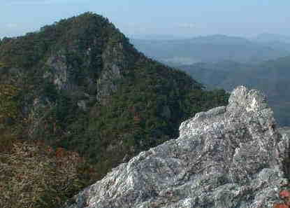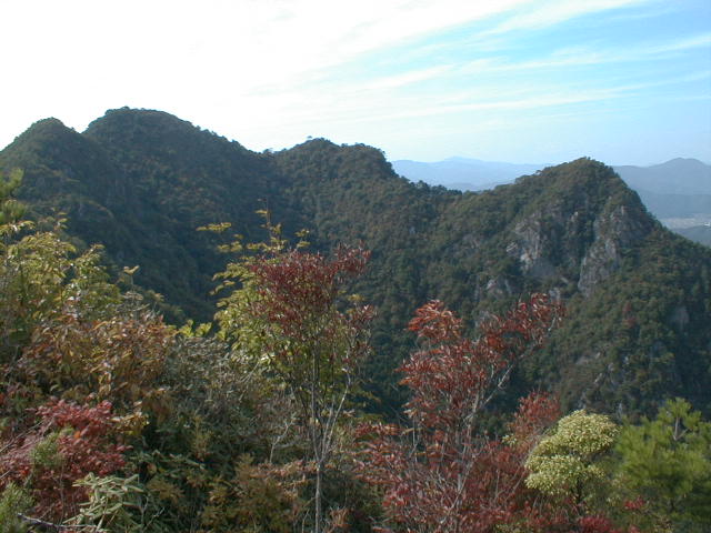 山々が少しずつ色づき始めた秋の一日、多紀連山の一角を占める三尾山に向かった。初めて見る三尾山は、その名が示すとおり西峰、東峰、本峰の三つの頂を持ち、独特な山容が印象的であった。山頂の標高は586m(本峰)と低いが、麓からこの山を見上げると、急な斜面に切り立つ岩壁が目立ち、標高以上の高さと険しさを感じた。