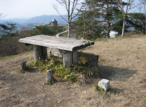 広く刈り払われた山頂には、三角点、方位盤、それにテーブルやベンチがあった。山頂で石を見ていると、展望台の方から夫婦がここまで上ってきたり、西軽井沢の方から女性パーティが上ってきたりして、にぎやかになった。
